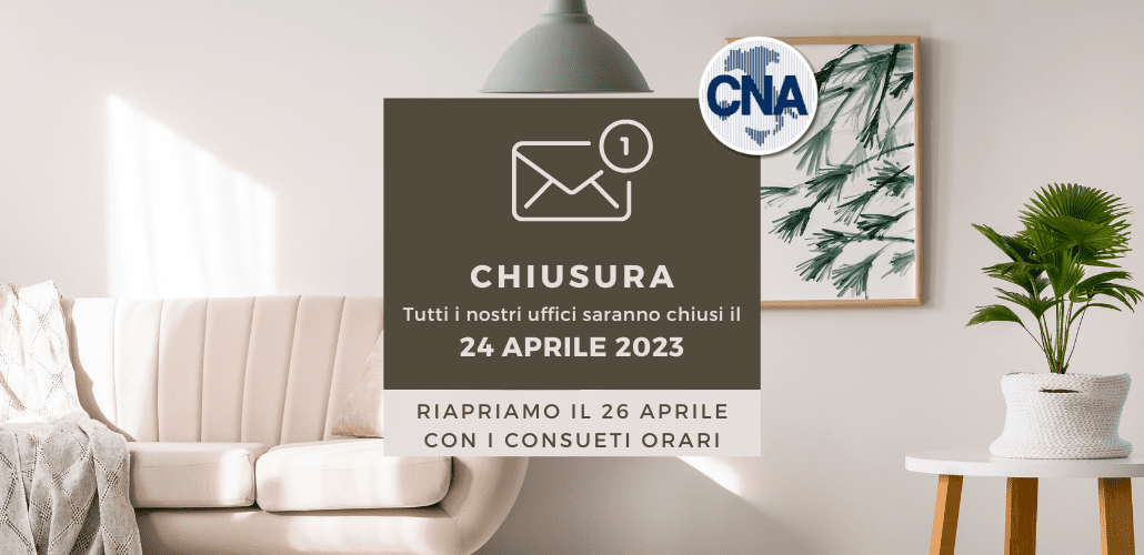 Si avvisano gli associati che gli uffici della CNA di Varese resteranno chiusi il 24 aprile 2023.